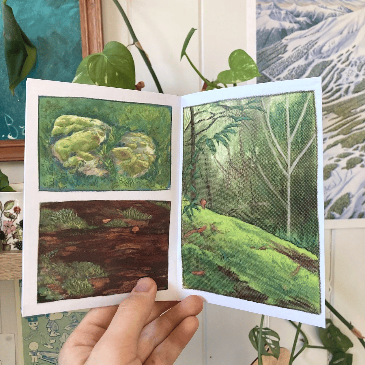 a full colour, 8-page (including front+back) artzine, featuring twelve illustrations/studies of moss :-)
